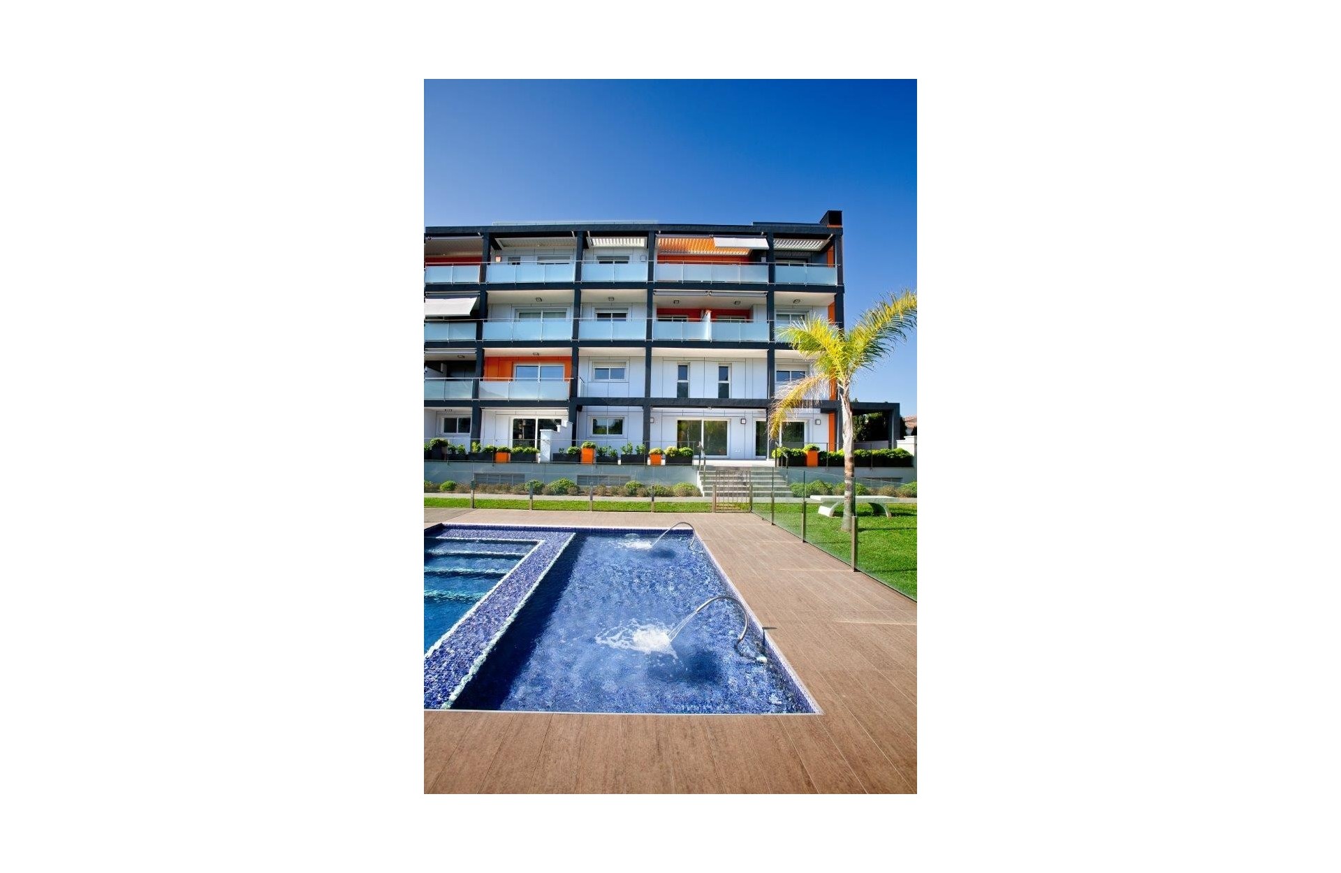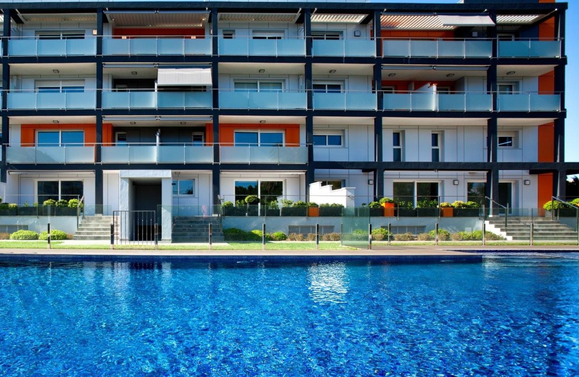 The apartment is located in a modern building with only 15 apartments, underground parking, garden, and a large swimming pool. Just 300 m from the wide sandy beach and within walking distance of the bus stop, supermarket, and various restaurants.